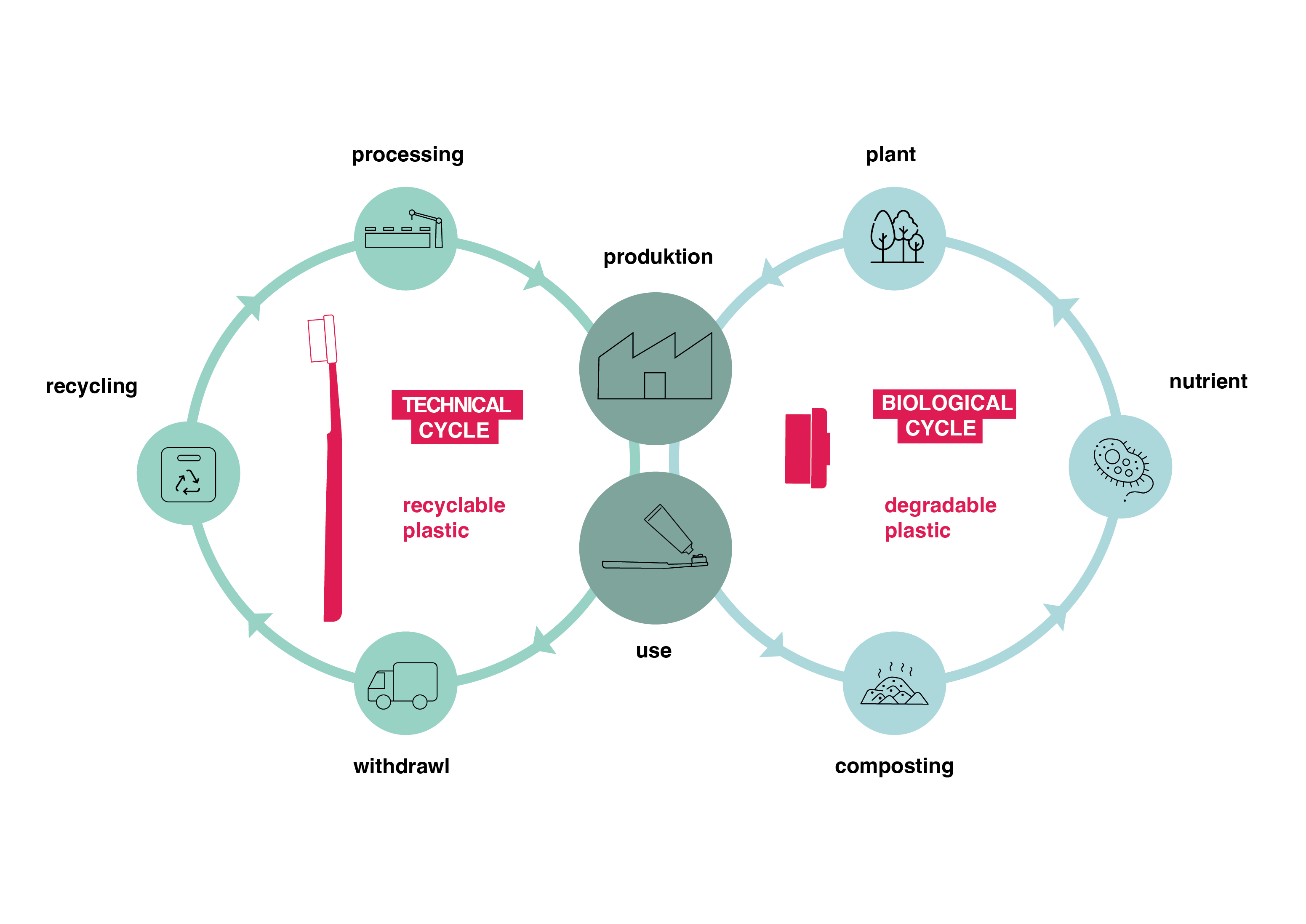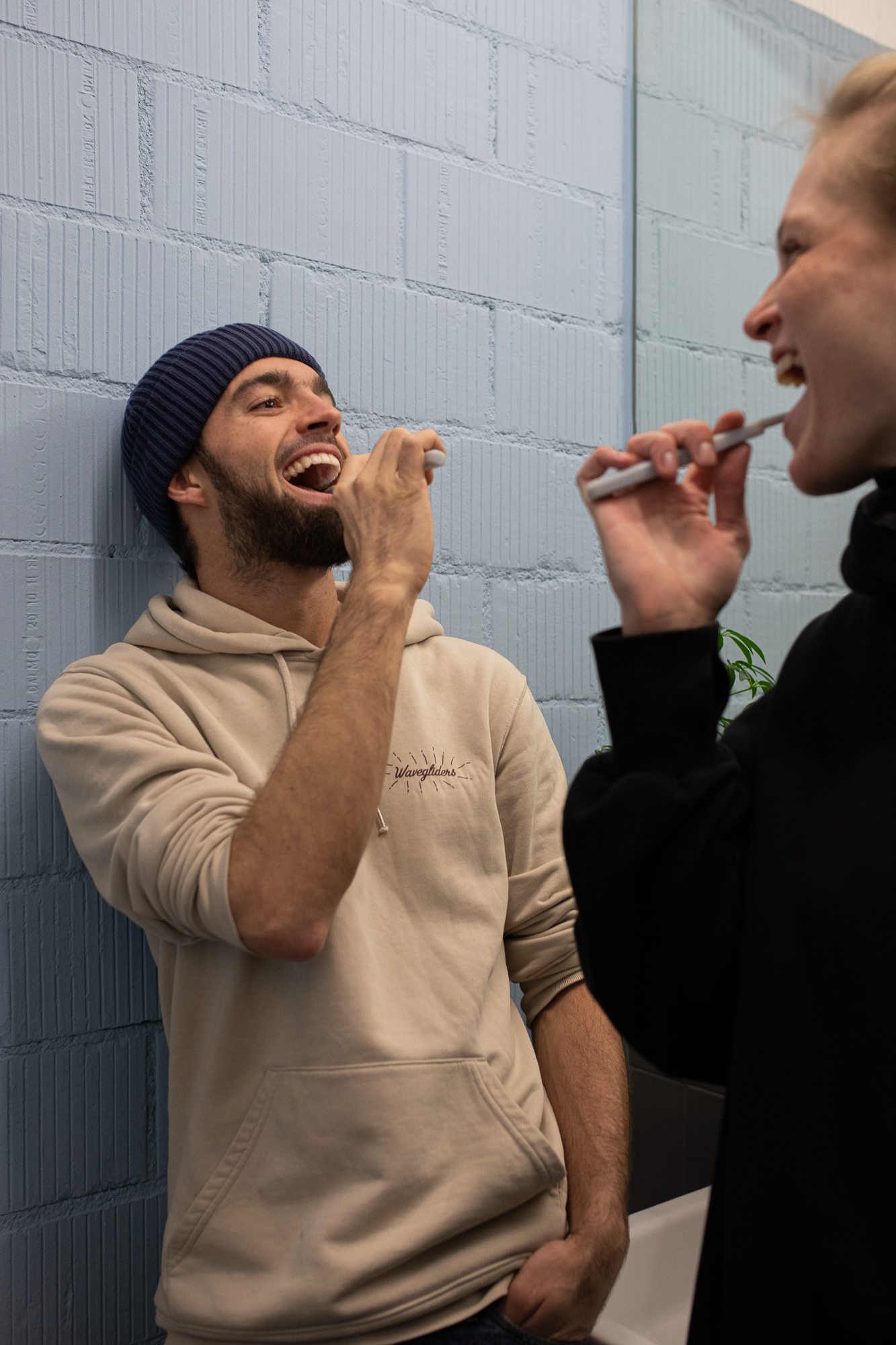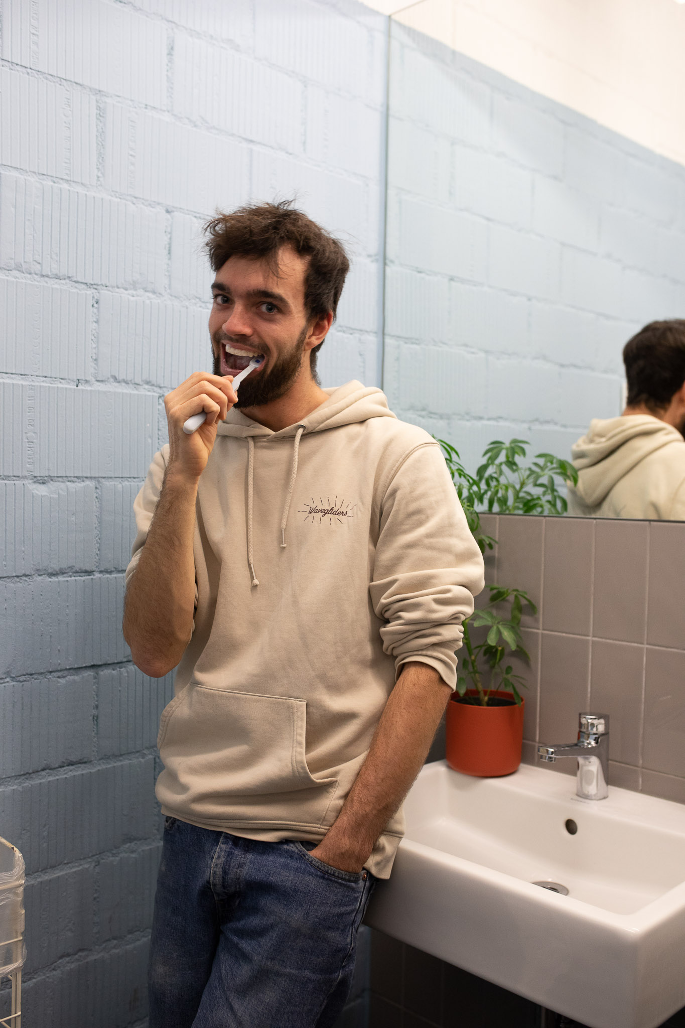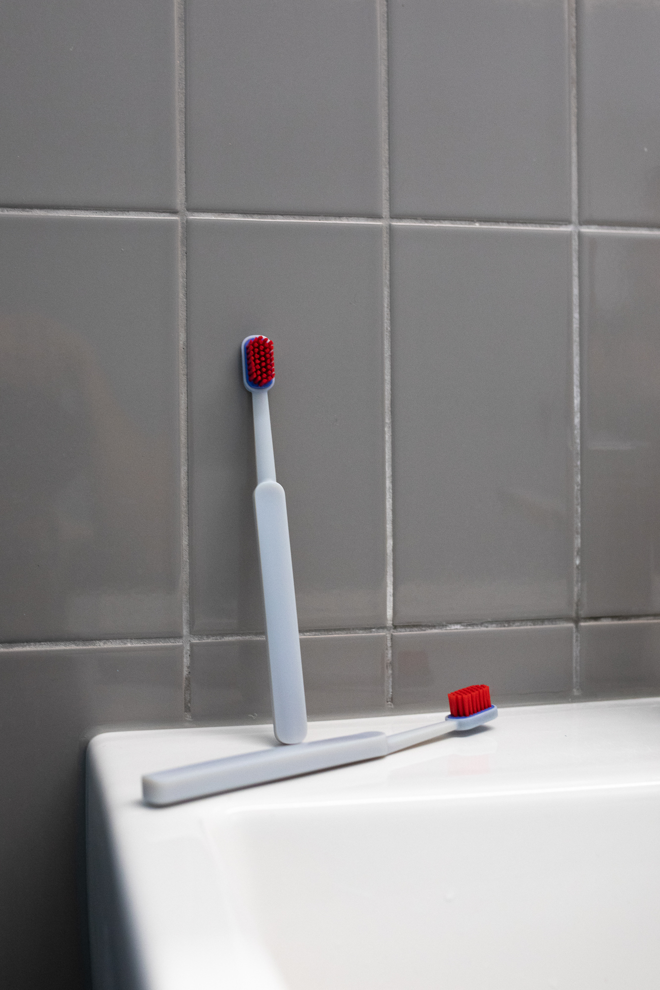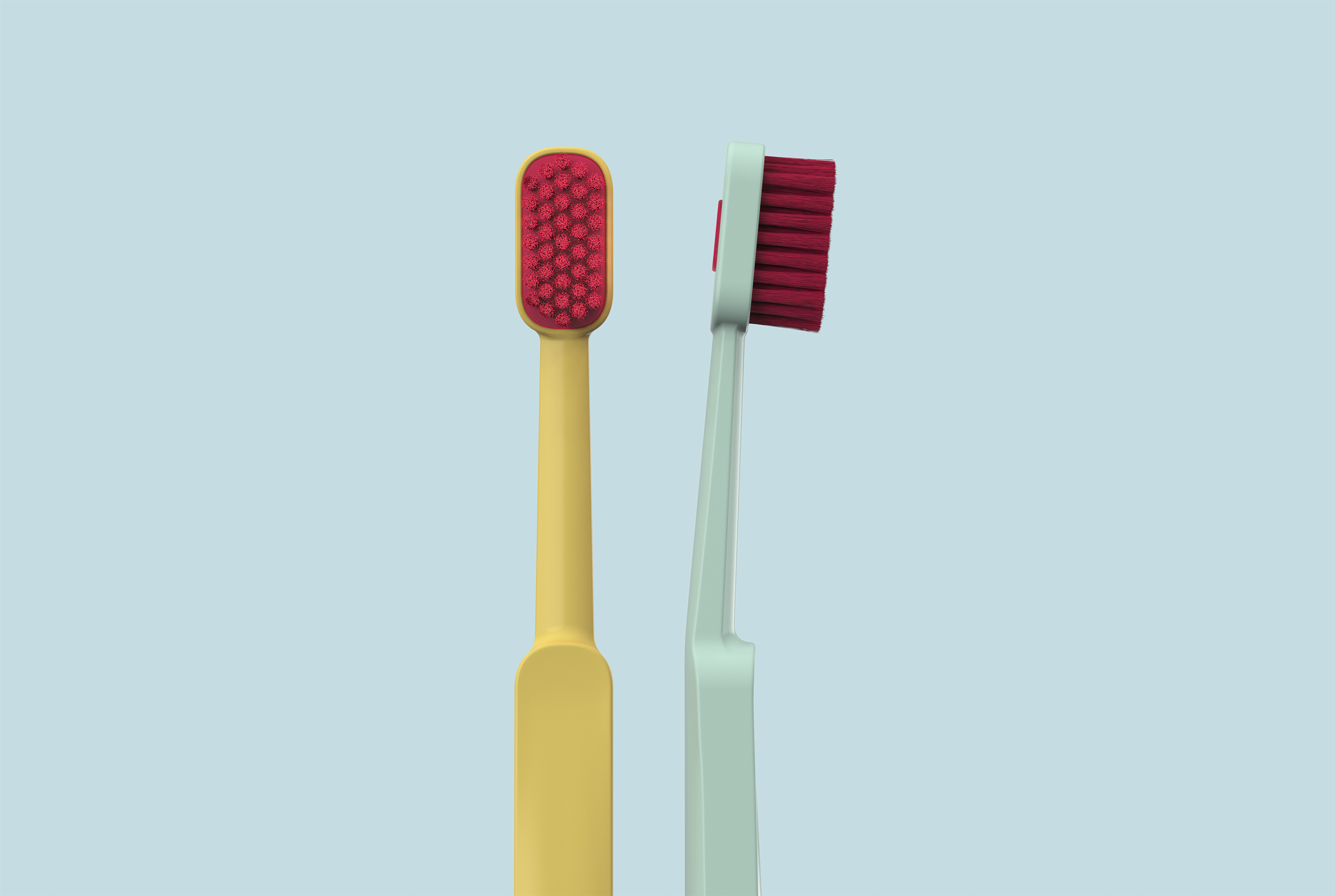 Our innovative redesign of the toothbrush, relies on a handle made of PA11, a bio-based durable plastic and a brush head made of a compostable monomaterial. In this way, we separate the toothbrush into two separate circuits. The handle is durable and therefore has a long shelf life. The bristles, on the other hand, can simply be composted at the end of their service life. In this way, the interchangeable head is our answer to treating our environment with respect.