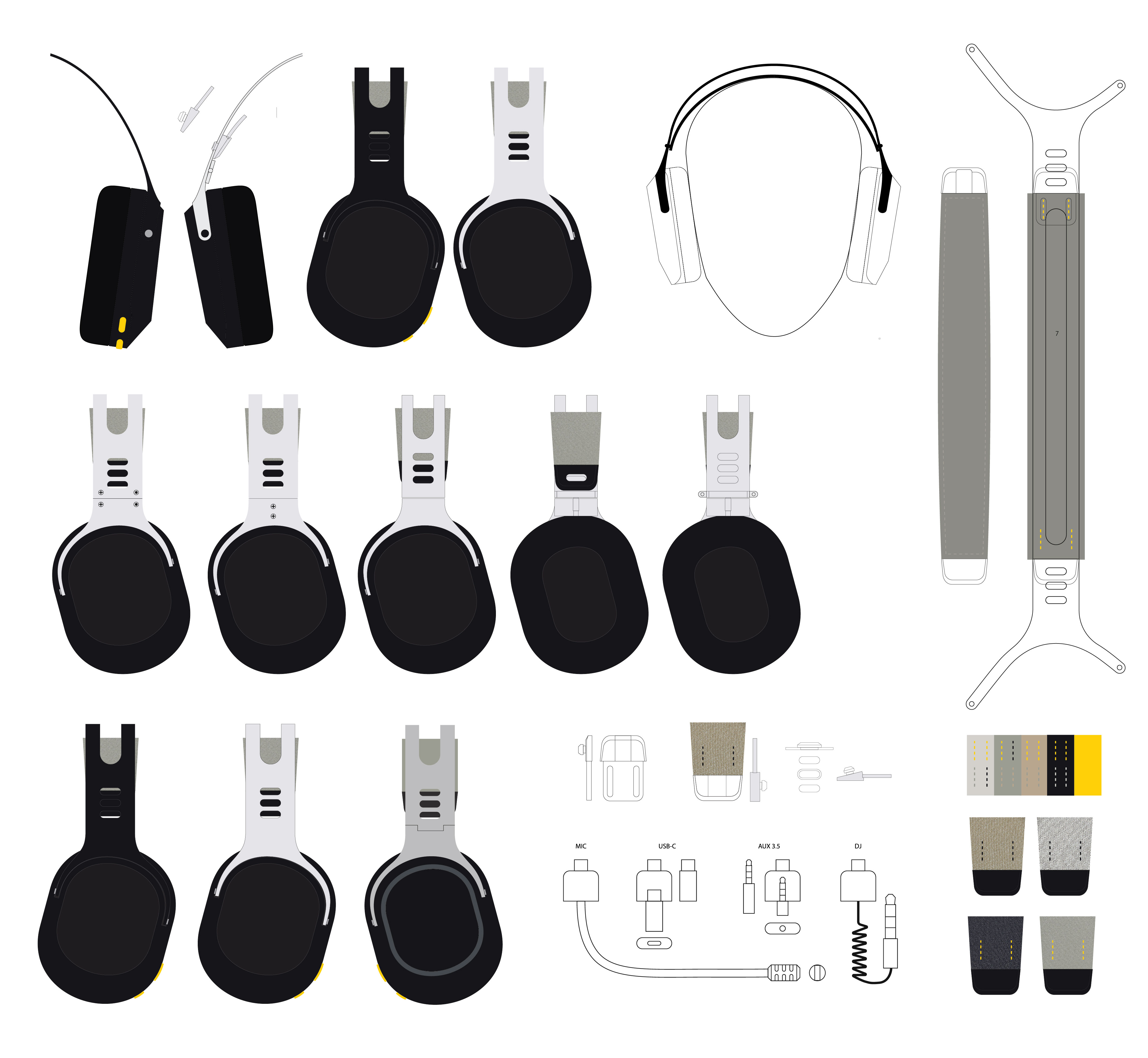 The "Orbit" project presents a fascinating sound experience that envelops the space around the head in sound. At the center is a modular concept that revolutionizes the way we perceive sounds. "Orbit" offers a unique system where different materials can be seamlessly combined to create a customizable sound experience. These materials are not only separable but also repairable, promoting sustainable use and maintenance. Immerse yourself in a new dimension of sound with “Orbit” and experience the freedom to design your personal listening landscape at home, at work or on the go.